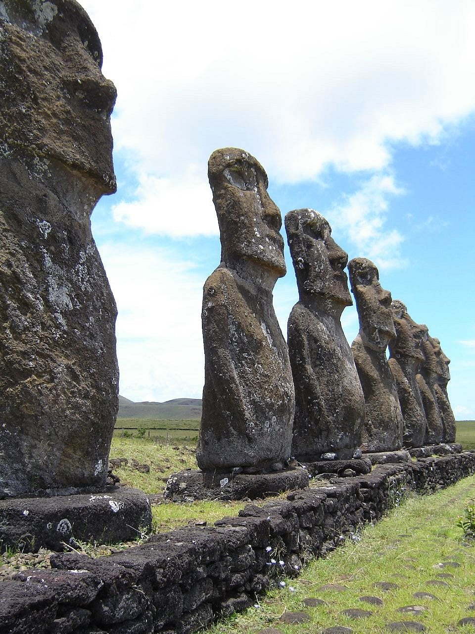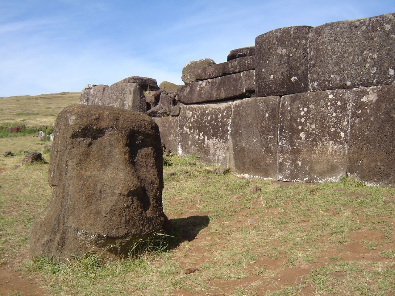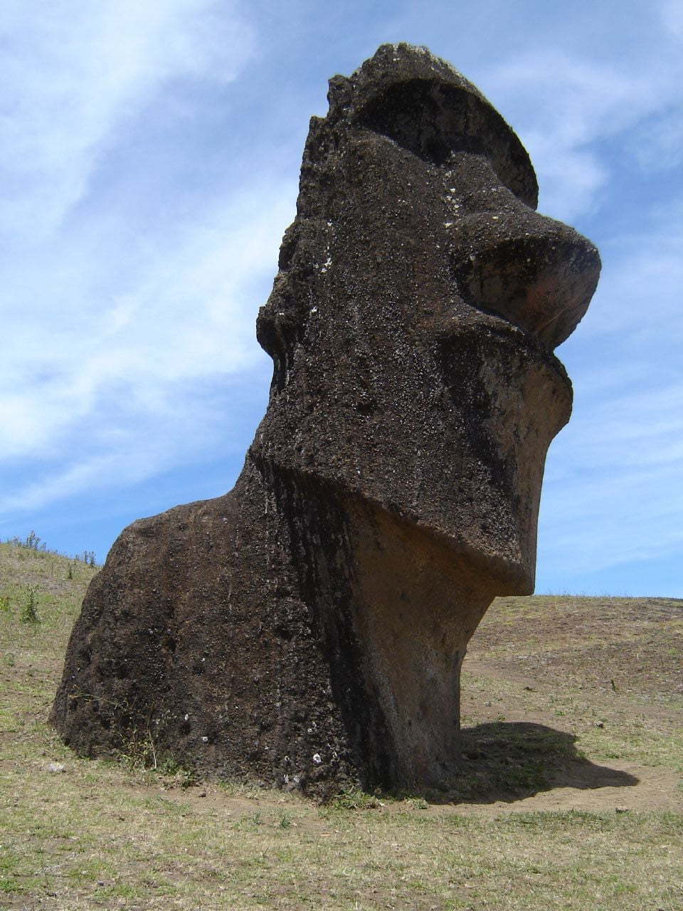 Istnieje wiele koncepcji mówiących o tym kto wyrzeźbił moai. Najpopularniejsza z nich mówi, że zrobili to polinezyjscy osadnicy około 1000-1100 roku. Inna twierdzi natomiast, że na Wyspę Wielkanocną mieszkańcy przybyli z Ameryki Południowej i stamtąd przywieźli umiejętności kamieniarskie. Praca nad posągi została przerwana nagle, świadczy o tym wiele niedokończonych posagów. Prawdopodobnym powodem było przeludnienie wyspy, klęska głodu i wybuch walk międzyplemiennych. Do tej pory nie wiadomo także w jakim celu zostały sporządzone posągi, wiele teorii mówi o posągach jako wyobrażeniu bóstw, czy też przodków.