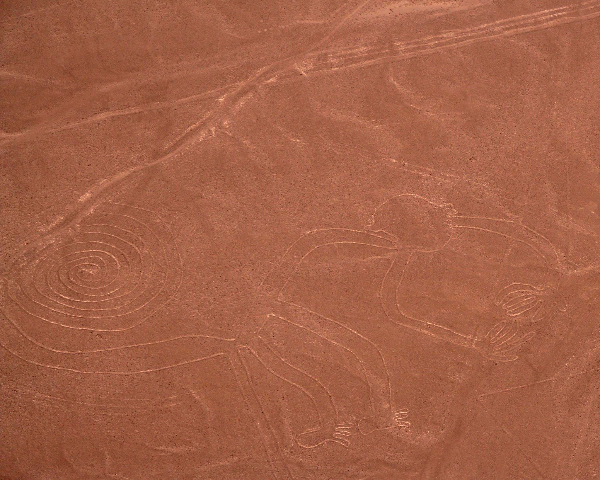 Jaszczurka długości 180 metrów, kondor o rozpiętości skrzydeł 130 metrów, pająk z 40-metrowymi odnóżami, równie gigantyczne małpy, kolibry, orki, psy, kaktusy, kwiaty, ryby itp. To rysunki na płaskowyżu Nazca, jedno z najbardziej tajemniczych miejsc na Ziemi.