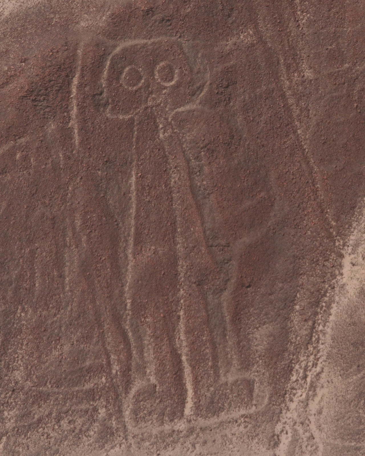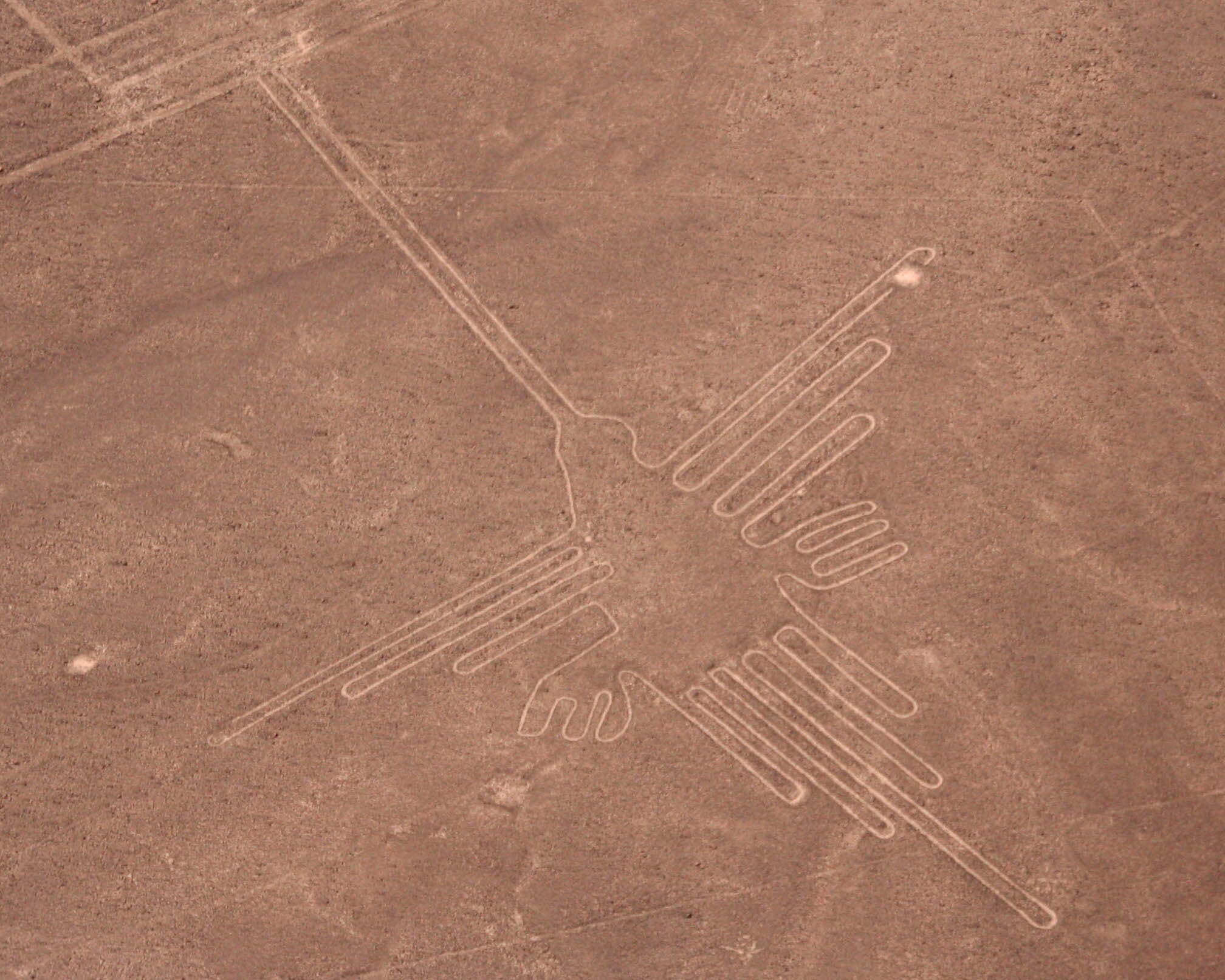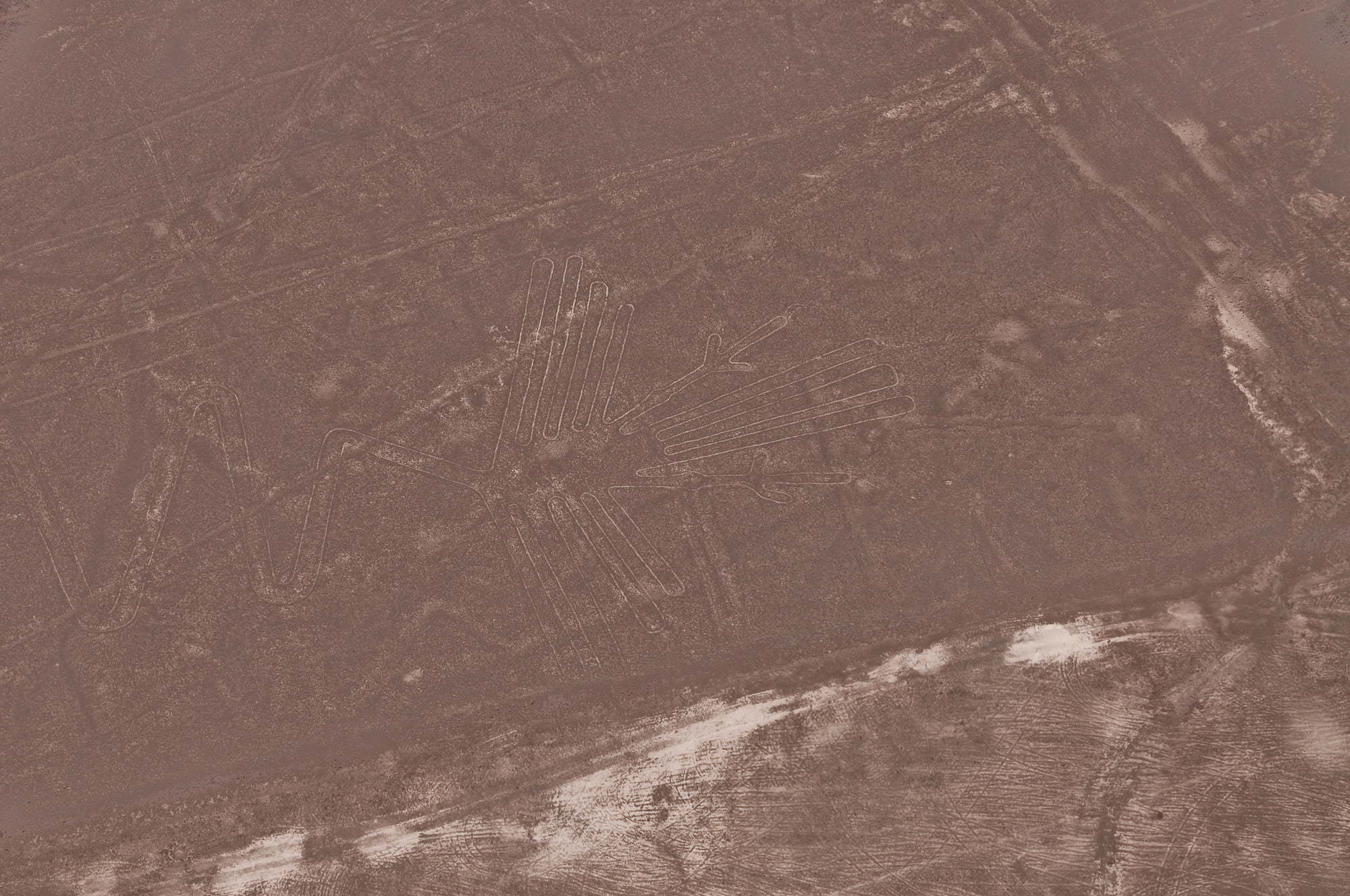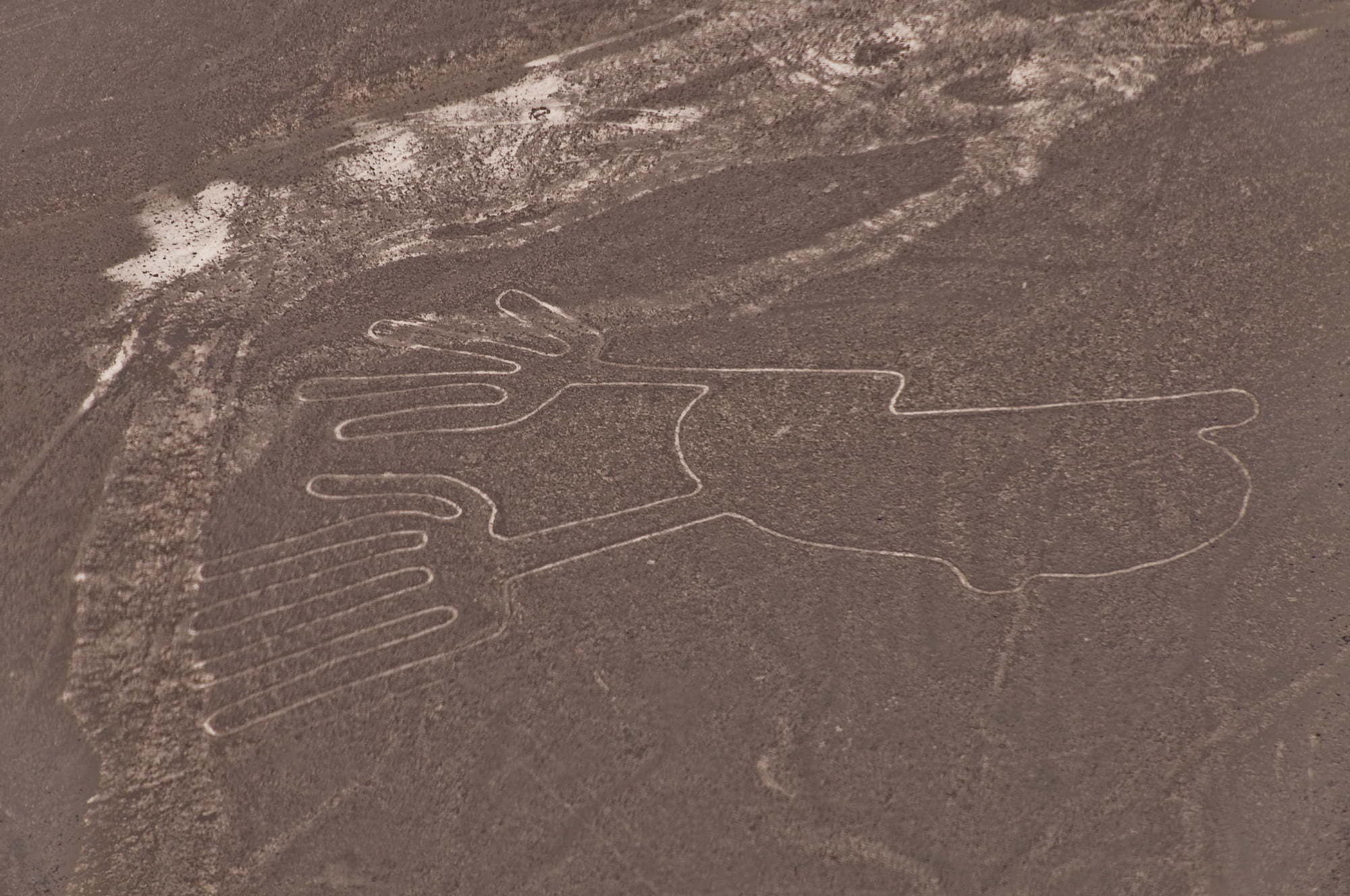 Co to jest – na pewno nie wiemy do dziś. Nazywa się je Rysunkami z Nazca. Ale dziwny to rysunek, skoro z ziemi prawie nic nie widać, ot, biegnąca gdzieś w dal metrowej szerokości i 20-centymetrowej głębokości ścieżka. Oglądane z góry, owe ścieżki układają się we wzory. I to jakie! Te największe mają wszak kilkaset metrów, a linie ciągną się aż za horyzont. Powstały w bardzo prosty sposób. Płaskowyż jest pokryty czerwonawym żwirem. Ale pod spodem jest żółtobiałe, jaśniejsze podłoże. Owe ścieżki powstały przez usunięcie ciemniejszej zewnętrznej warstwy.