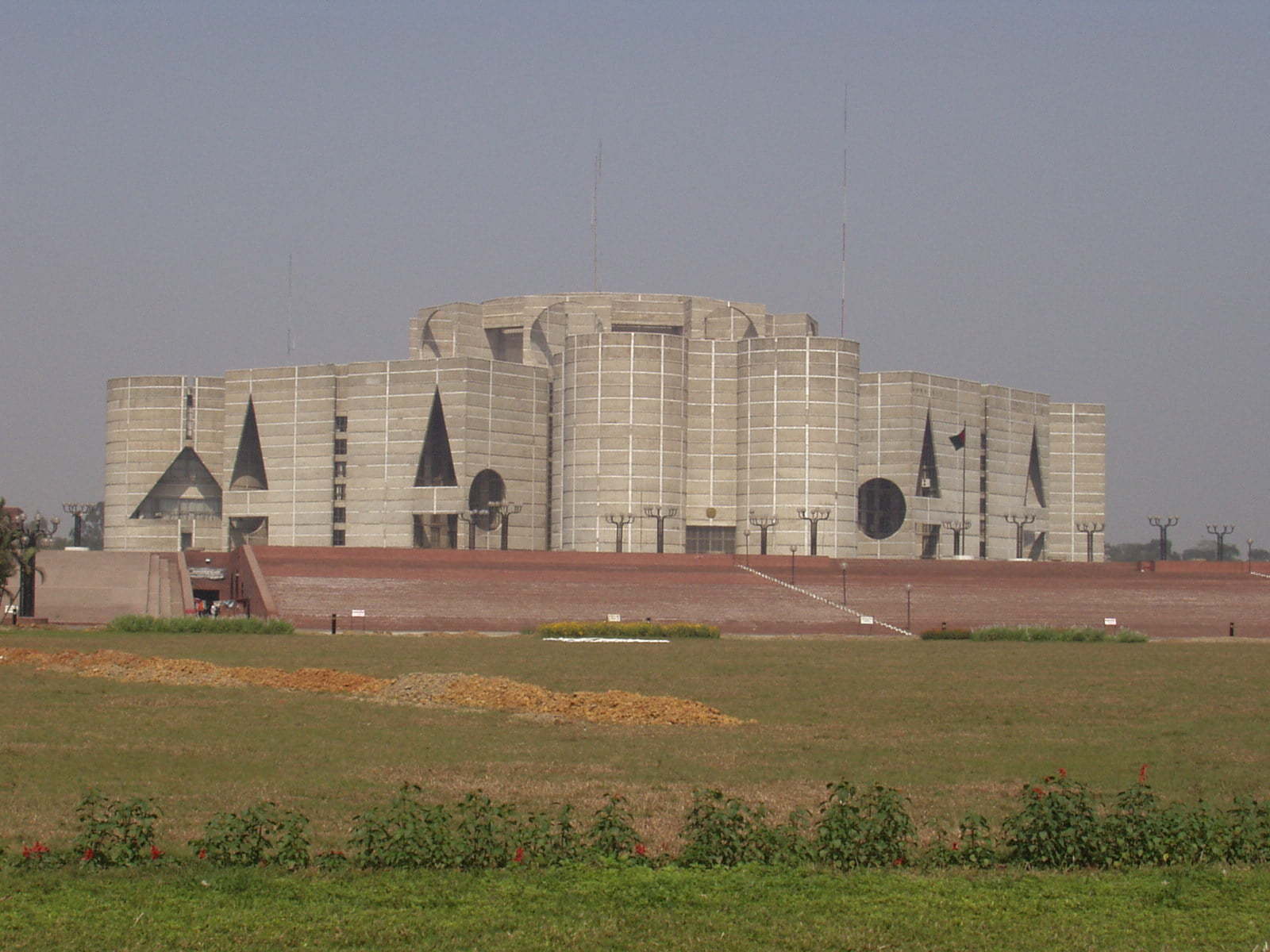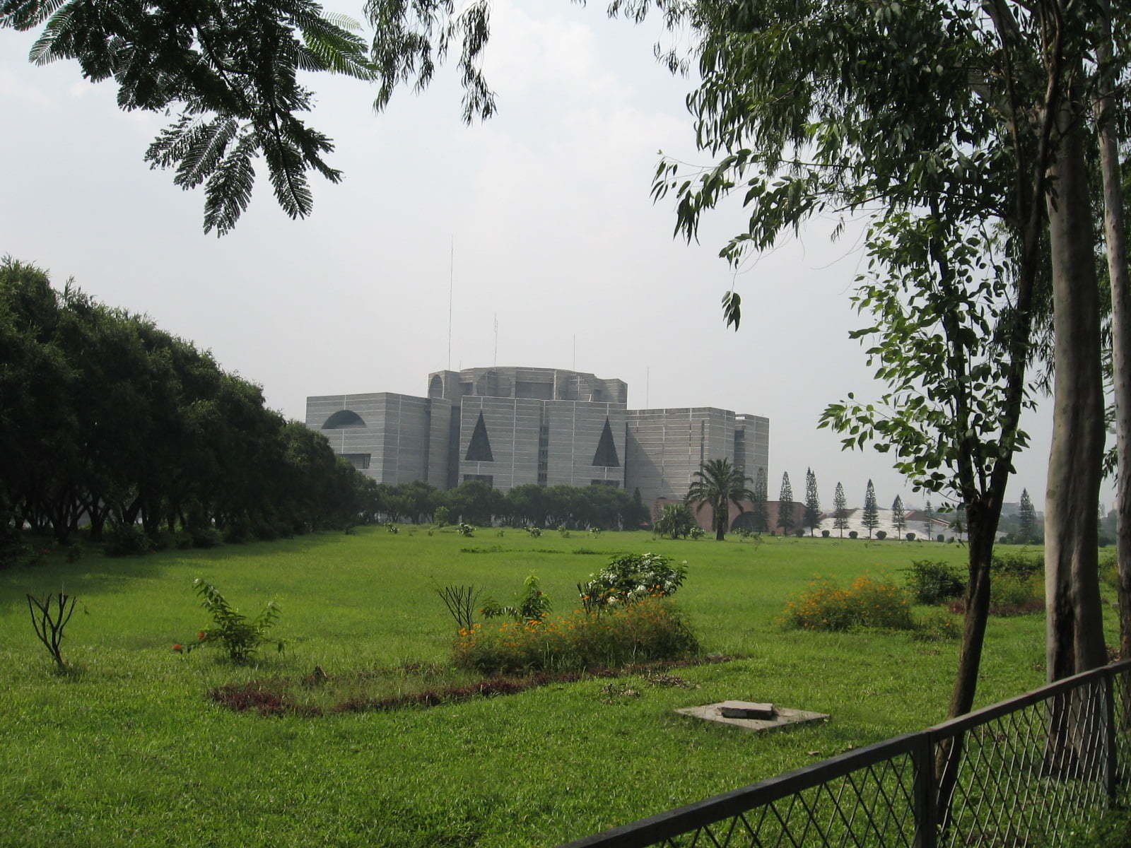 Kompleks Jatiyo Sangsad zajmuje powierzchnie około 200 hektarów. Obejmuje on budynek Zgromadzenia Narodowego, hotele dla członków parlamentu, ministrów i sekretarzy. Otoczony jest przez atrakcyjne ogrody z drzewami eukaliptusa oraz jeziorami. Wody jednego ze sztucznych jezior stykają się bezpośrednio ze ścianami budowli.