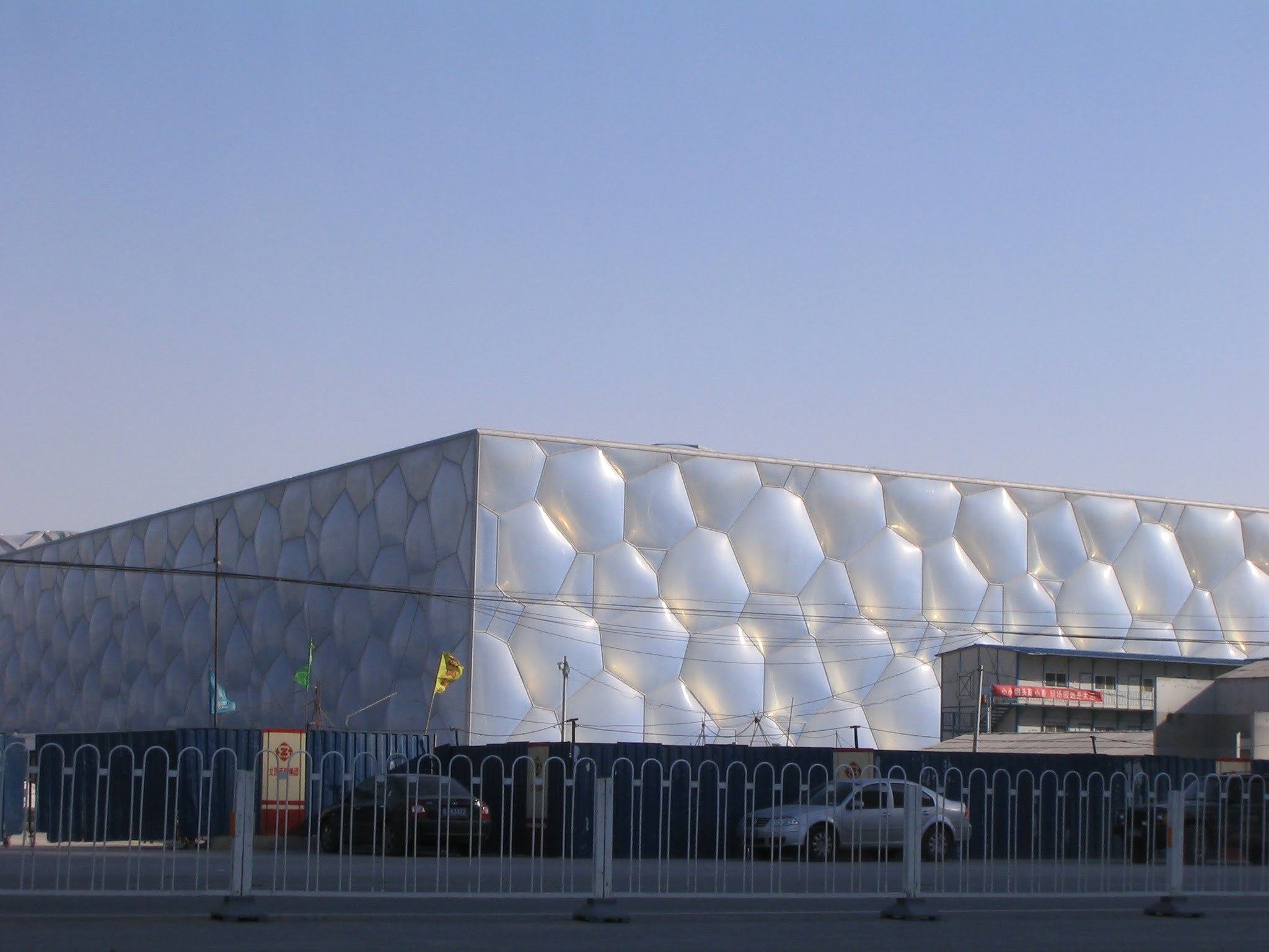 Prace budowlane nad Wodnym Sześcianem, zwanym również [H2O]³, oficjalnie rozpoczęły się 24 grudnia 2003 roku. Część zbudowana z betonu i stali została ukończona w lipcu 2006 roku. W dniu 1 sierpnia 2006 roku rozpoczęto instalację poduszek, a zakończenie prac nastąpiło w październiku 2007 roku.